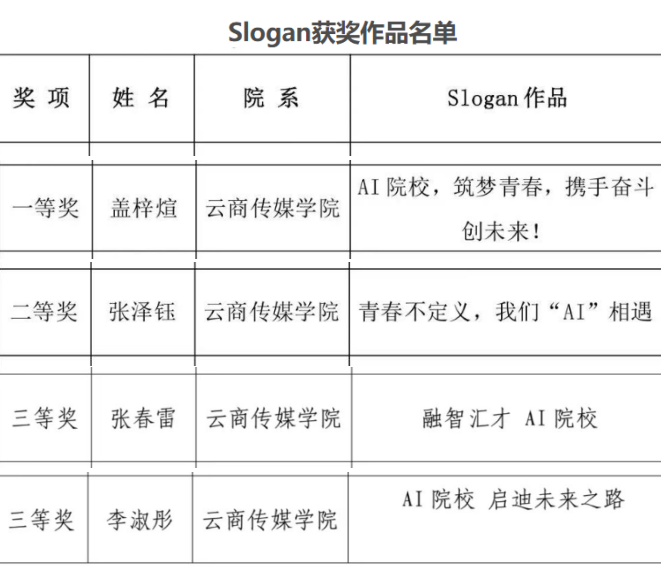 近日,山东圣翰财贸职业学院公布首届“AI 院校”Logo 及 Slogan 创意大赛校级决赛获奖名单。云商传媒学院师生积极参与,并在比赛中取得了令人瞩目的成绩。