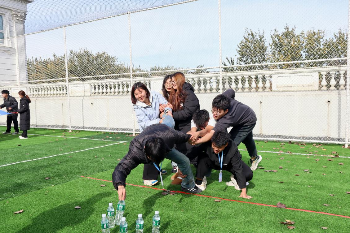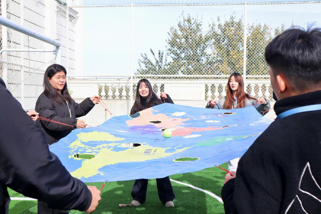 “环球旅行”游戏将活动推向高潮,学生们在拉起的世界地图上控制网球穿行,挑战必须经过七大洲、四大洋的路线。这个游戏不仅考验了团队的协作能力,还激发了学生的创新思维,让他们意识到突破思维局限的重要性。而“群龙取水”活动则将团队合作推向新的高度,通过一系列挑战,学生干部们学会了相互信任,共同面对困难。