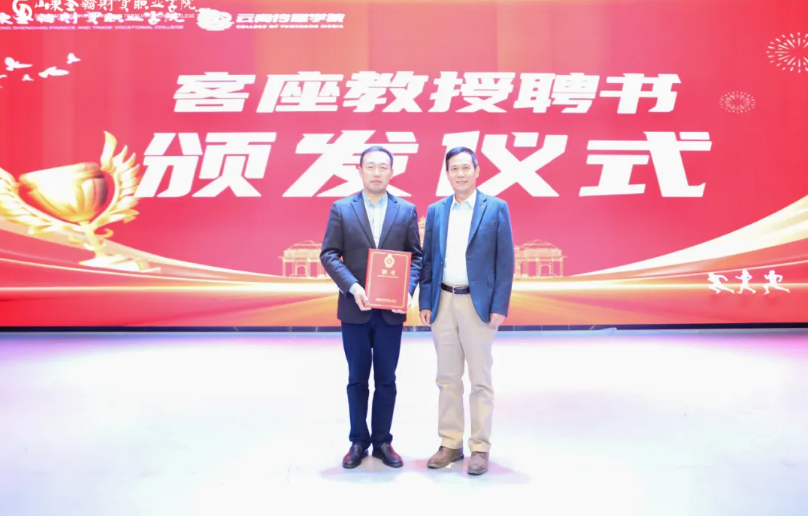 随后,“全国电商发展情况及发展方向”讲座在第二报告厅举行。姚东方代表学校向于登杰秘书长颁发了客座教授聘书,于登杰秘书长与姜峤副校长共同为云商传媒学院“博闻讲坛”揭牌。