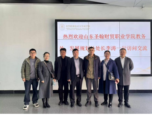 2025年3月19日-20日,山东圣翰财贸职业学院教务处处长李涛、实习就业办公室主任冯兴师、云商传媒学院院长李学治等一行5人赴金华职业技术大学考察交流,受到金华职业技术大学领导班子的热情接待。双方围绕职业教育改革、产教融合实践、学校教学运行机制、专业和课程建设、党建与思政工作创新等主题展开深入对话,并实地参观新商科智慧工坊、校史馆等校园文化,为两校未来合作奠定坚实基础。