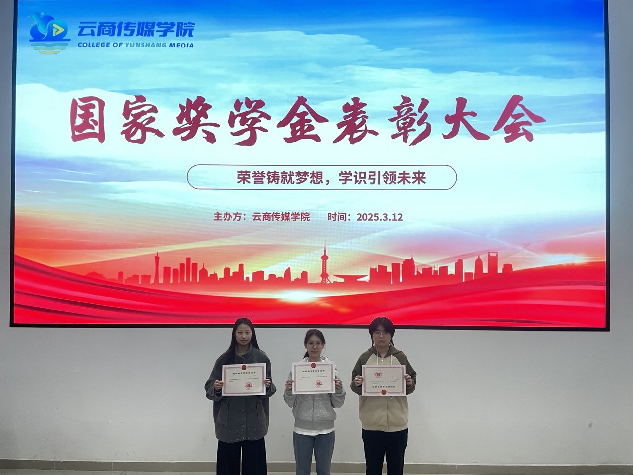 经教育部严格遴选,云商传媒学院2023级学生李筱涵、盖梓煊、马欣悦凭借优异学业成绩、创新实践成果及综合素质表现脱颖而出,获评国家级奖学金。