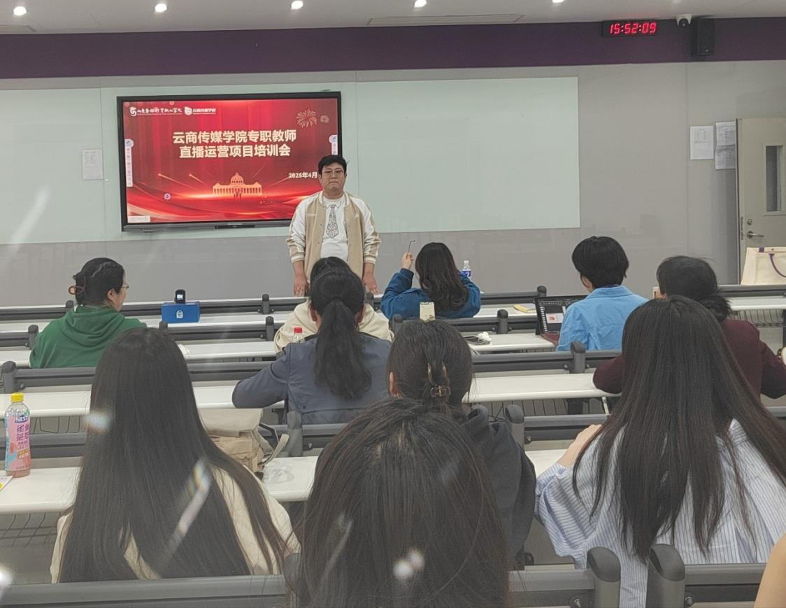 4月11日下午,云商传媒学院在咏望楼409室成功举办“一类平台与二类平台的认识”直播运营项目培训会。本次培训特邀济南布丁网络信息服务有限公司资深运营专家宋浩然担任主讲,旨在提升学院教师在直播电商领域的专业教学能力,推动产教深度融合。