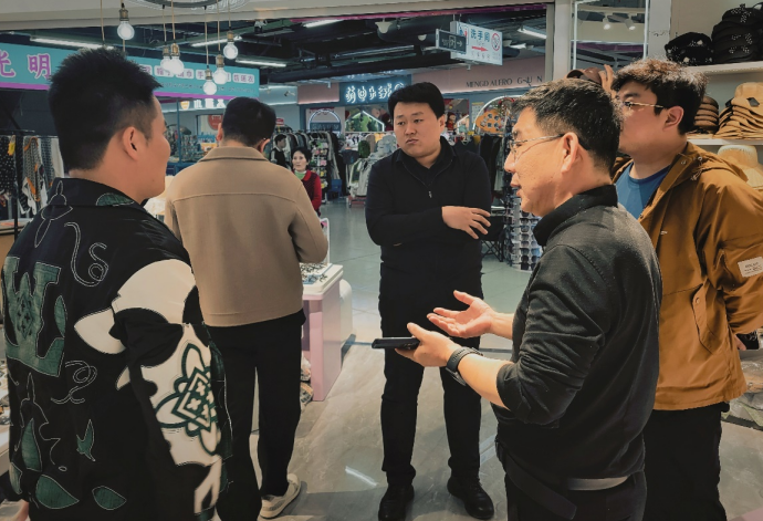 4月14日下午,云商传媒学院院长李学治、济南布丁网络信息服务有限公司总经理王兴海一行在西市场刘总经理的热情接待下,与市场内文创、玩具、日用百货等领域的多家商户代表展开深度洽谈,共同探索“学生直播团队助力传统商户线上转型”的合作路径。这场别开生面的对话,为传统商贸市场的数字化升级注入新动能。