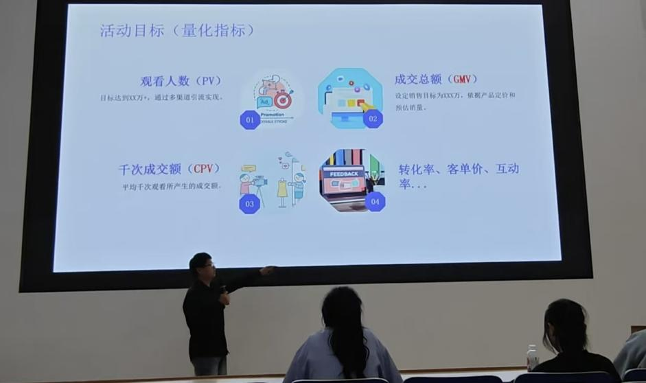 点评环节后,马圭老师以“直播活动策划与执行全流程”为主题,为学生们带来一堂生动详实的实战课程。他结合行业案例,系统讲解了直播活动的前期筹备、人员分工、时间表制定、应急预案设计等核心环节,并分享了团队协作与流量转化的实用技巧。学生们认真记录、踊跃提问,现场互动氛围热烈。