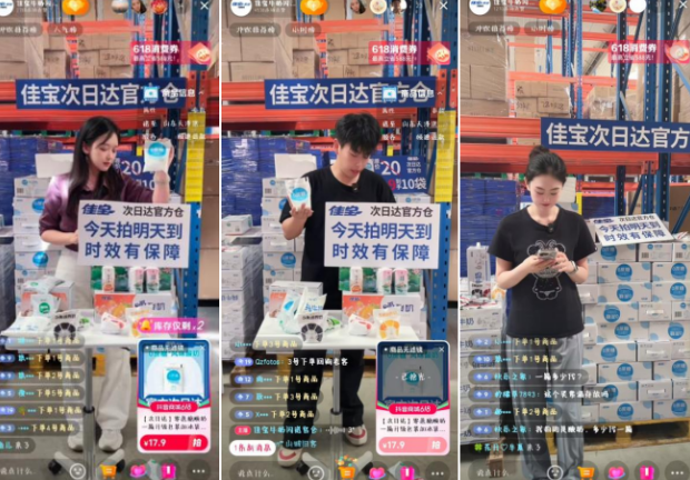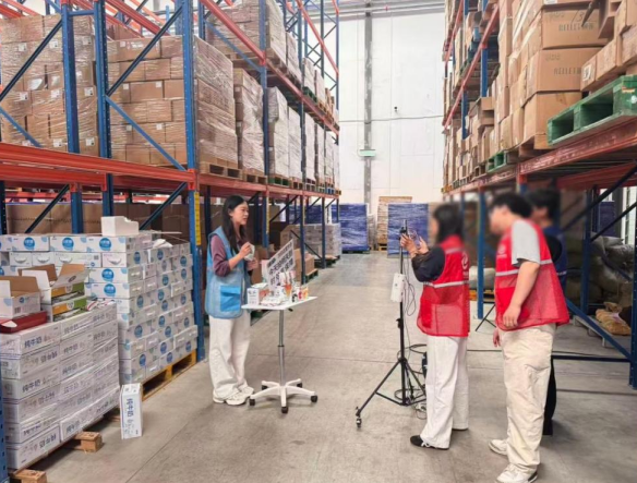 13日上午9时,仓储区临时搭建的直播台前,佳宝明星主播@佳宝牛奶闪送官仓正在进行日常直播。“家人们看这配料表,只有生牛乳三个字!”主播一边对着镜头近距离展示产品包装,一边以仓库货架为背景强调“新鲜直达”的卖点。三名学生身着临时工服在后台全程记录,刘志昊在笔记中写道:“原来仓库实景入镜能直观传递‘源头直供’的信任感,话术设计要紧扣‘新鲜’‘正品’关键词。”在直播间隙,学生们还跟随仓库管理员学习产品分拣流程,了解乳制品仓储的温湿度控制标准,为次日实战积累行业知识。14日,实训场景转移至佳宝牛奶仓库专区。主播在出货间隙穿插直播,实时展示货架上的产品库存,并通过“点关注领2元券”“刚拆箱新品上架”等话术,将仓库作业场景转化为促销节点。学生们重点观察到三大实战技巧:库存可视化、促销即时性、场景沉浸感。