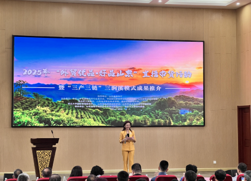 本次活动围绕“庆丰收·迎双节·促融合·赋新能”核心目标展开,设置领导致辞、“三产三链”三涧溪模式推介与成果展示、云仓服务体系及电商大数据平台发布、项目签约与颁奖、主题研讨、全天候直播带货、产品展示与资源对接七大环节。现场,三涧溪村高淑贞书记围绕“党建引领乡村振兴”主题发表讲话,总结分享三涧溪村依托“三产三链”模式推动乡村产业转型升级的实践经验。山东省电子商务协会于登杰秘书长详细解读了党建引领下“三产三链”模式,深入剖析该模式在促进助力农业数字化转型中的核心作用与价值。同时,多项赋能乡村电商发展的成果集中落地,例如山东省云仓服务体系、电子商务大数据平台正式发布,为农产品溯源、物流配送提供数字化支撑。此外,项目签约与颁奖、主题研讨、全天候直播带货、产品展示与资源对接等环节有序推进,不仅见证了一批乡村电商合作项目落地,更通过直播带货将山东外贸优品推向全国市场,同时搭建起政企校多方资源对接的桥梁。