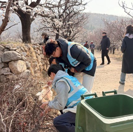 活动当天,万亩杏花园内花团锦簇,志愿者们身着统一蓝马甲,穿梭于景区主干道、观景台及热门打卡点,热情为游客提供路线指引、秩序维护、文明劝导等服务。此外,志愿者们还主动协助景区工作人员清理步道及绿化带内的垃圾,向游客发放文明旅游宣传单页,倡导“无痕出游”理念。蓝马甲与粉白杏花交相辉映,成为春日山野间一道别样的风景线。