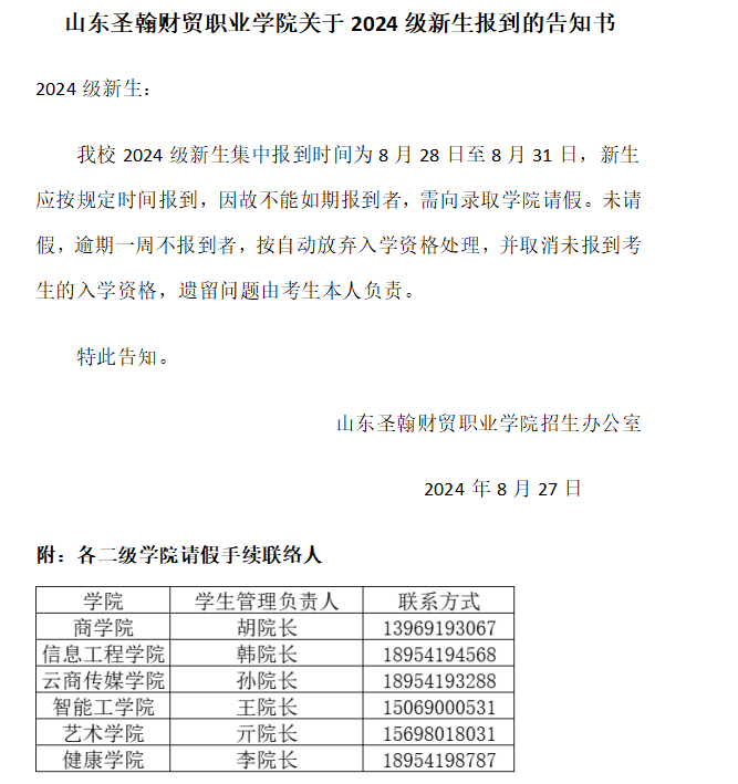 重要通知丨山东圣翰财贸职业学院2024年单