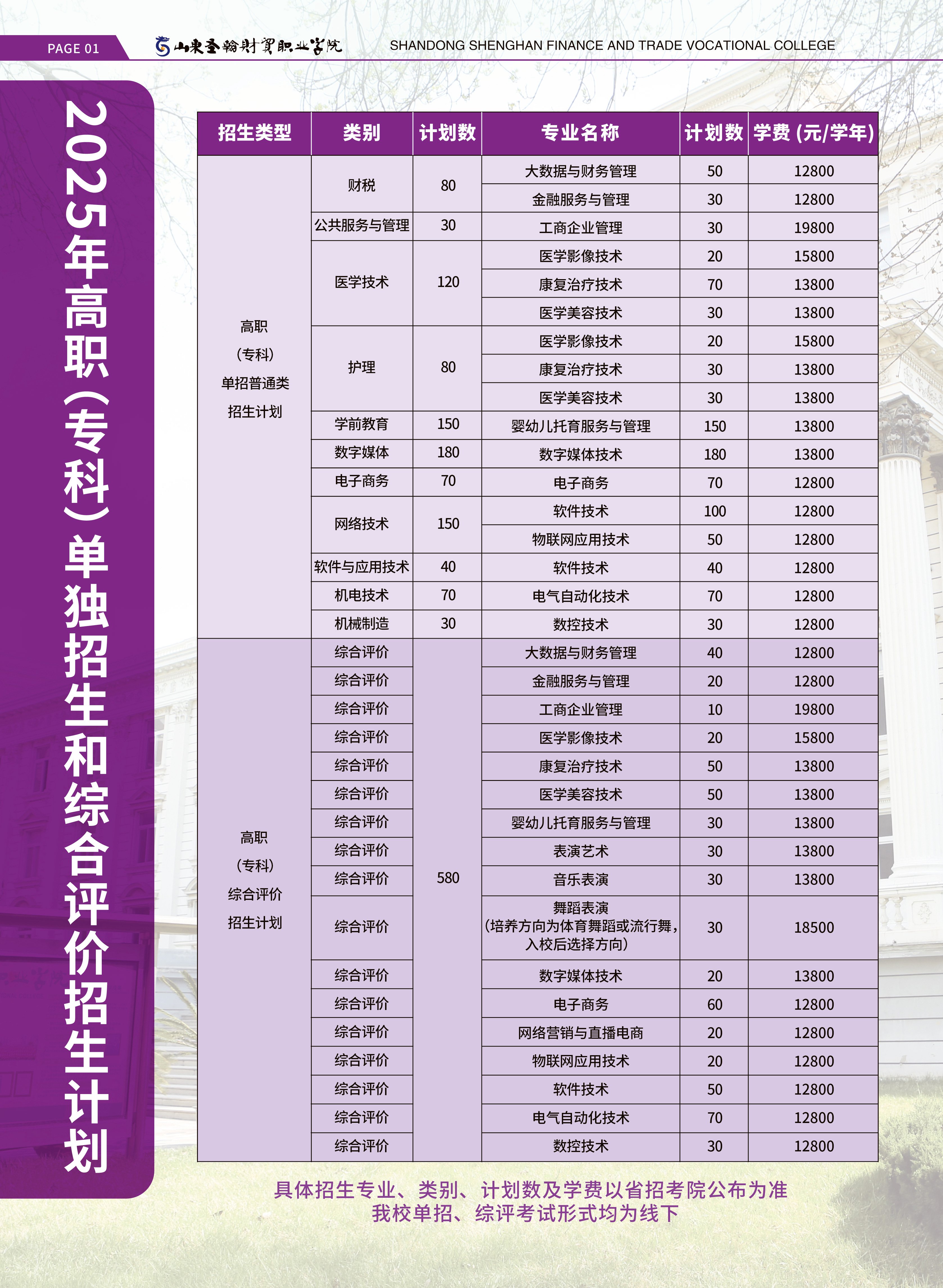 山东圣翰财贸职业学院2025年单独招生和综合评价招生简章