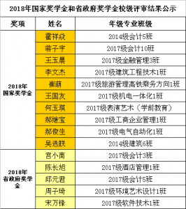2018年国家奖学金和省政府奖学金校级评审结果公示