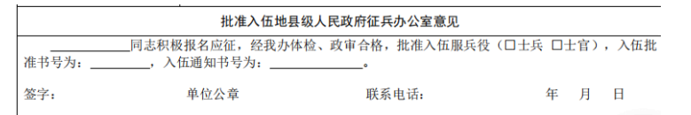 3. 当地武装部填写信息并盖章