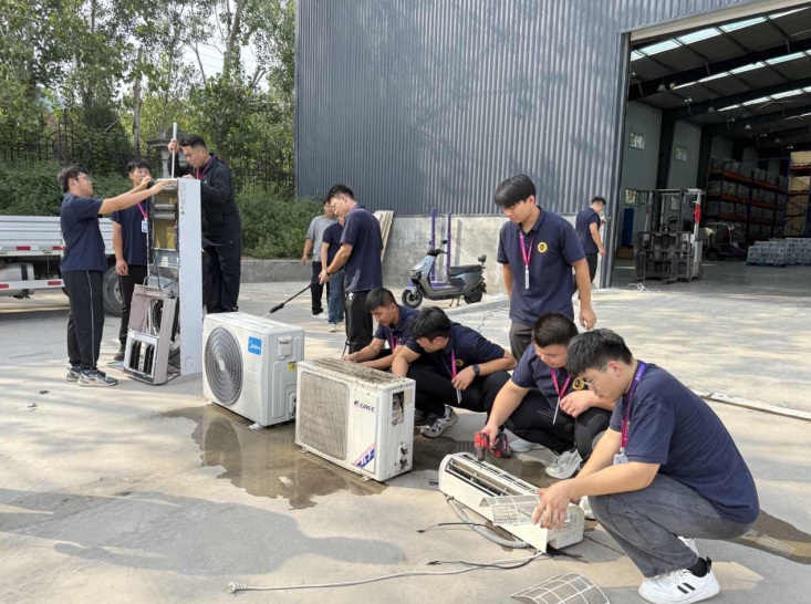 资产管理中心技能升级!特邀专业保养空调师傅现场授艺,学习空调清洗与保养。拆解清洁皆严谨,既强技能更促管理,全力推学校资产管理提效精细化,为校园资产运维护航!