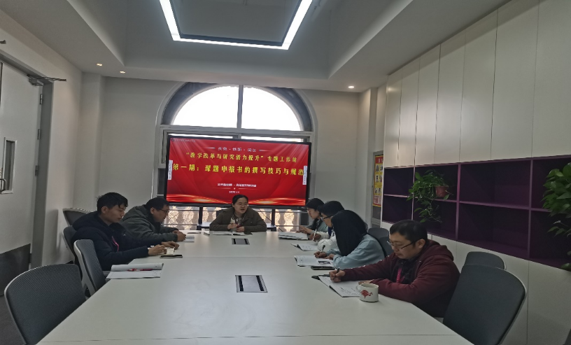 为进一步深化教学改革,提升教师教科研能力与课题申报质量,11月28日,公共基础部高等数学教研室在吉纯楼317办公室举办了“教学改革与研究能力提升专题工作坊”第一期活动。本期主题聚焦“课题申报书的撰写技巧与规范”,教研室全体教师积极参与,共同学习、交流提升。