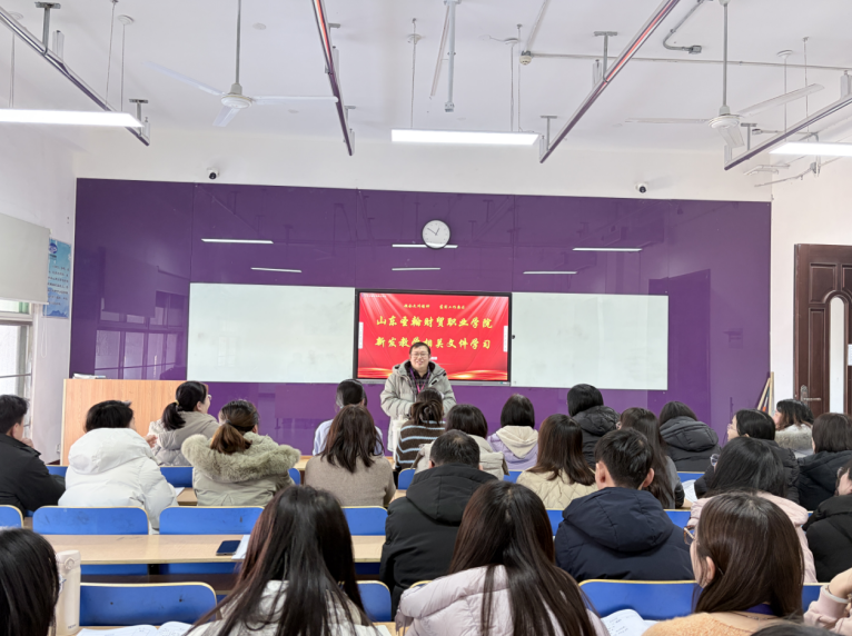 会议聚焦《教育部财政部关于实施中国特色高水平高职学校和专业建设计划(2025-2029年)的通知》《山东省教育厅山东省财政厅关于实施山东省高水平高职学校和专业群建设计划(2025-2027年)的通知》等四份核心文件。黄海英结合高职教育新形势与新任务,对文件的目标要求、核心要义与实践路径进行了深入解读。她指出,这些文件是引领学校未来教学改革、提升办学质量、培养高素质技术技能人才的行动纲领,全体教师须深刻领会,将其作为教学工作的“指南针”。