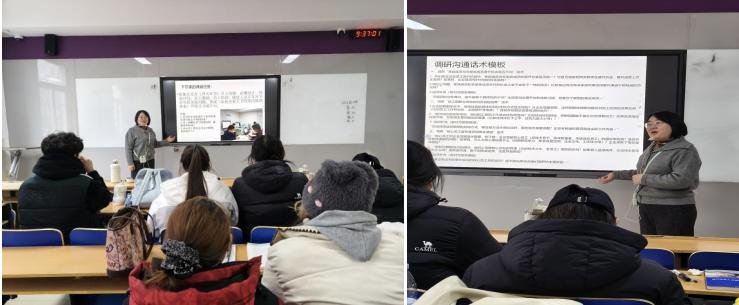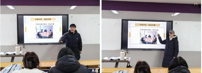各小组依次登台展示方案,现场构建“展示—互评—指导”三阶互动场域。学生围绕方案的设计逻辑、落地路径与可行性展开陈述,系统锤炼岗位核心能力——材料整合提炼、结构化表达与临场应变;组间通过质疑、补充与观点交锋,实现思维碰撞与方案迭代,在模拟实战中贴近真实人力资源管理场景中的协同决策过程。