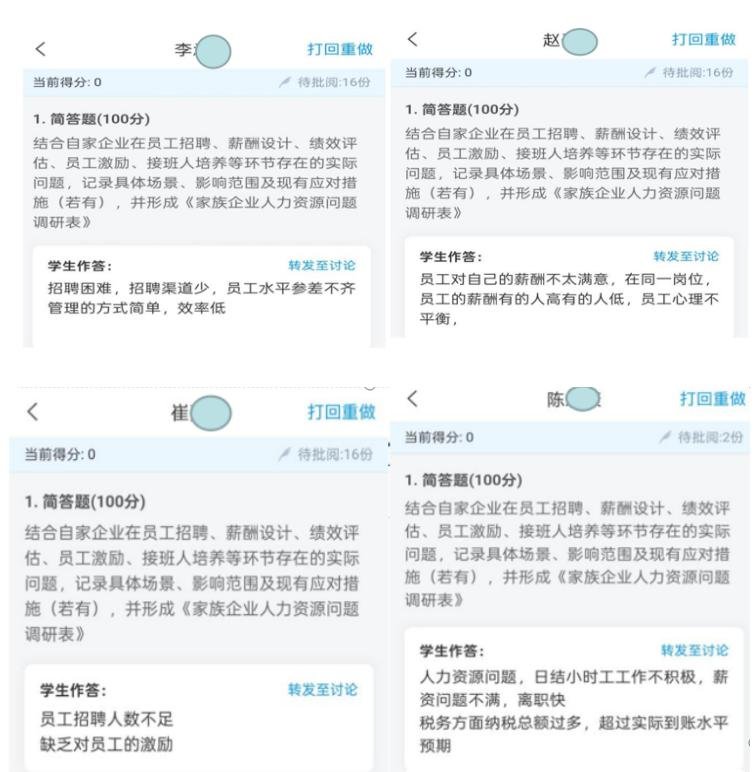 《人力资源管理技能操作》作为工商企业管理专业核心课程,其培养目标与企业人力资源管理师要求的岗位能力模型全面对标。为实现教学与岗位需求的精准耦合,任课教师通过学情诊断发现:32%的学生来自制造业、零售业等领域的家族企业经营家庭,这些学生虽对“员工亲属化管理”“代际传承人才断层”等痛点有天然感知,但因缺乏系统知识框架,难以将实际问题转化为专业解决方案。据此,任课教师以企业人力资源管理师证书考点“人力资源调研与问题诊断”要求为指引,布置课前调研任务:学生以“家族企业人力资源观察员”身份,与家中经营者沟通,聚焦招聘、薪酬管理、人员培训、绩效考核等核心模块,收集真实问题与场景,填写《调研表》提交学习通平台。