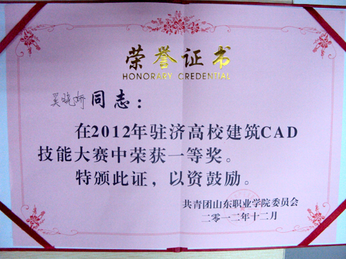2012年12月15日,驻济高校建筑CAD技能大赛在山东职业学院举行。此次大赛的主要目的是落实“国家现代技术型紧缺人才教育培训”的要求,提高大学生的工程识图能力和计算机绘图水平。