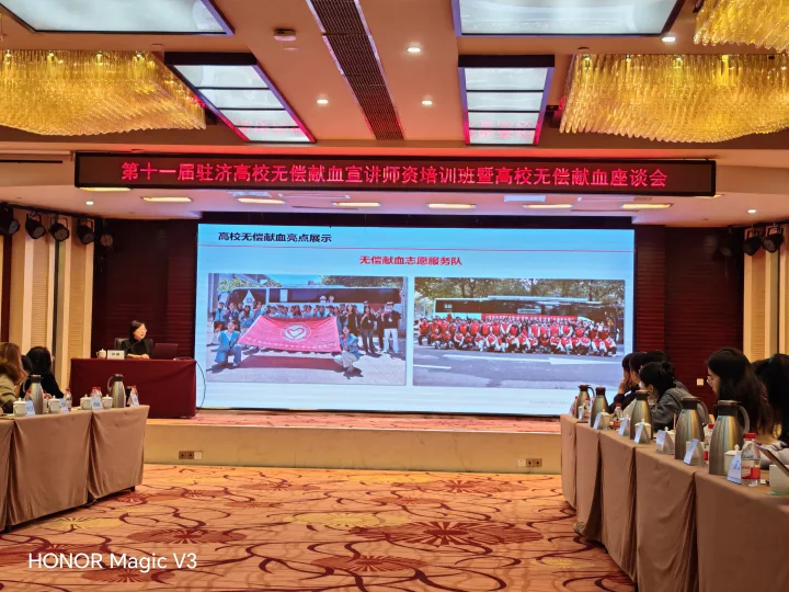 10月31日,山东省血液中心无偿献血工作座谈会在济南召开,旨在总结交流无偿献血工作经验,推动全省无偿献血事业持续健康发展。山东圣翰财贸职业学院作为高校代表应邀参会,学校团委刘军凯在会上分享了无偿献血工作的经验与成效。