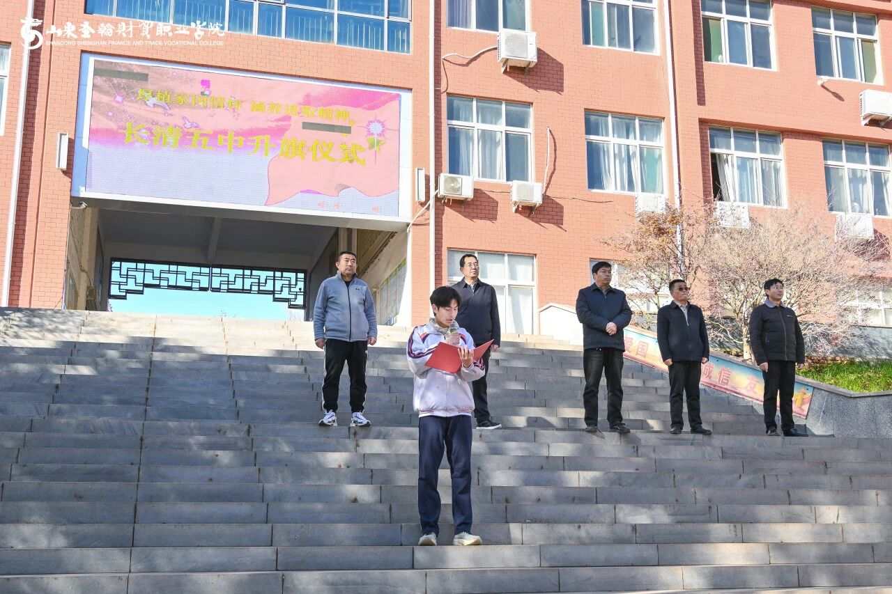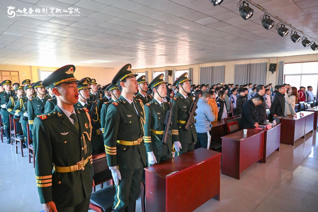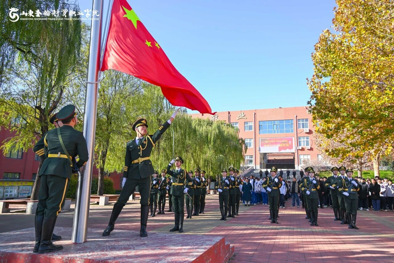 活动在庄严的升旗仪式中拉开序幕。山东圣翰财贸职业学院国旗护卫队队员身着礼服,精神抖擞、步伐铿锵,迈着整齐划一的正步走向升旗台。伴随着雄壮的《义勇军进行曲》,五星红旗冉冉升起、迎风飘扬,全体人员肃立行注目礼,深切感受国旗的庄严与国家的荣耀,爱国情怀在心中激荡 。