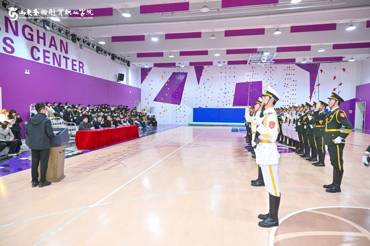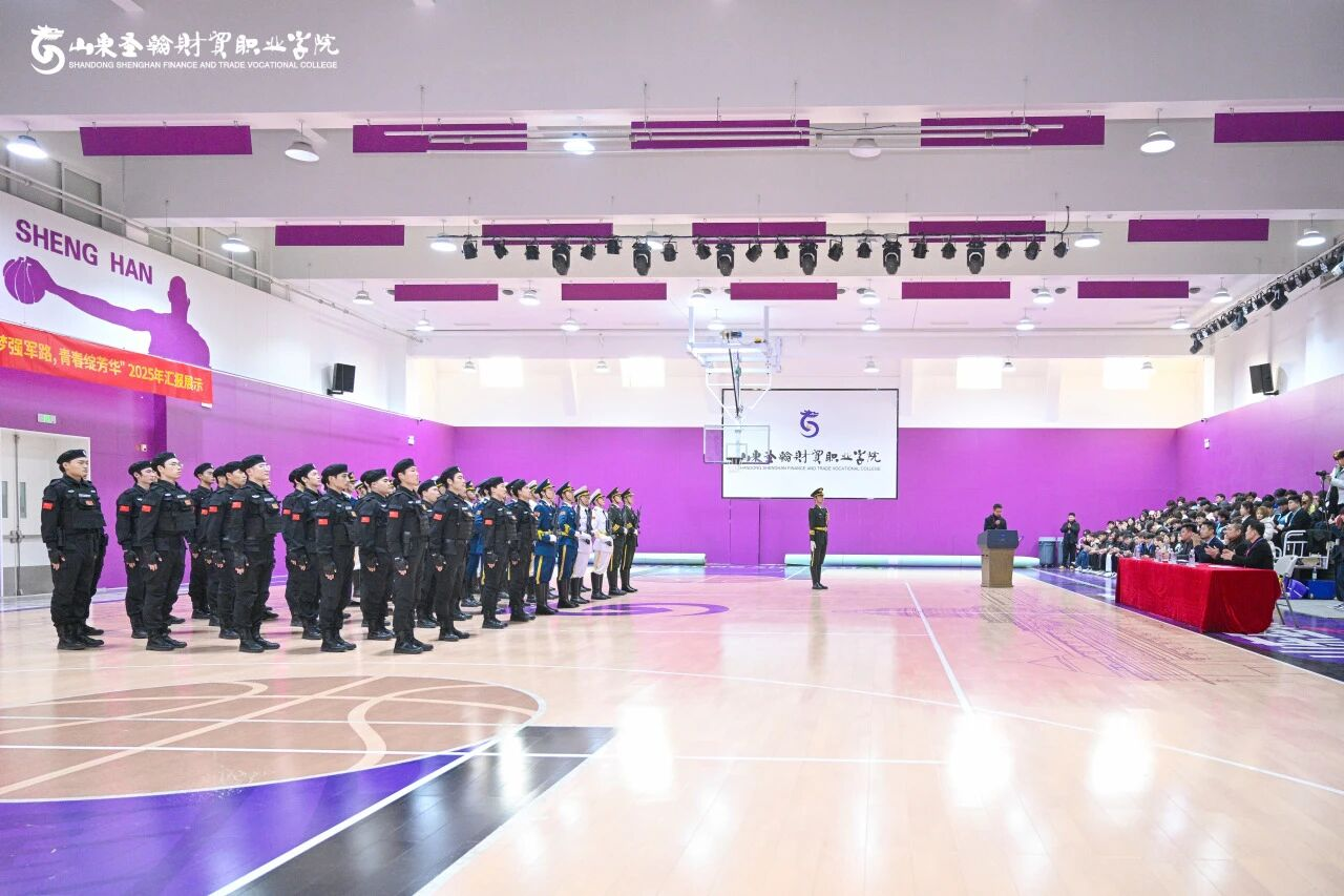 为厚植青年学子国防情怀,传承红色基因,凝聚强军报国力量,12月4日,山东圣翰财贸职业学院军事爱好者协会“逐梦强军路,青春绽芳华”2025年汇报展示活动在吉纯楼二号体育馆顺利举行。学校校长刘广耀出席活动,学校办公室主任魏树立、团委书记周光奇、副书记谢鑫同各校级组织、二级学院300余名师生代表参加活动,活动由学校团委教师刘军凯主持。