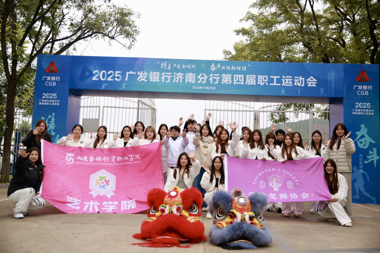 在新时代强调大学生“德智体美劳”全面发展的背景下,为深化实践交流、弘扬青春正能量,2025广发银行济南分行第四届职工运动会于10月25日上午盛大开幕。山东圣翰财贸职业学院艺术学院学子受邀远赴现场,以一场活力与传统交融的精彩表演,为开幕式注入独特青春风采。