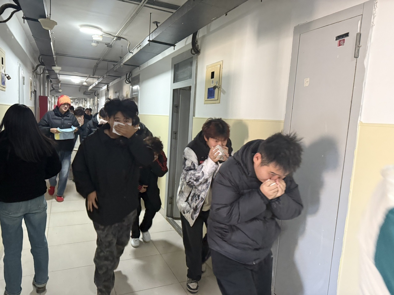 演习筹备阶段,学院高度重视、精心部署。一方面,通过班级主题班会、宿舍安全宣讲会、线上消防知识推送等多渠道,向师生系统普及火灾逃生技巧、灭火器操作规范、应急疏散注意事项,让消防安全知识入脑入心;另一方面,联合后勤保障部门对消防设施进行全面“体检”,细化疏散路线规划,在关键节点设置清晰标识,明确各岗位职责分工,构建起“责任到人、流程闭环”的演练保障体系,为演习顺利推进筑牢坚实基础。
