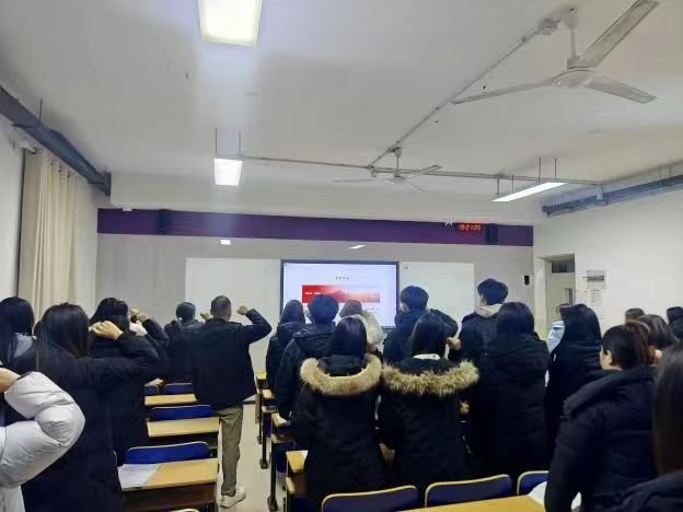 “我宣誓:忠于中华人民共和国宪法,维护宪法权威,履行法定职责……”近日,咏望楼自习室内气氛庄重肃穆,商学院“12·4国家宪法日·弘扬宪法精神·维护宪法尊严”主题教育班会在此举行。全体师生高举右拳,在辅导员李占贞老师的带领下进行庄严宣誓,铿锵誓言回荡在教室中,也将宪法精神深深镌刻在每一位学子心中。此次活动是商学院深入学习宣传贯彻习近平法治思想,以法治教育落实立德树人根本任务的生动实践。