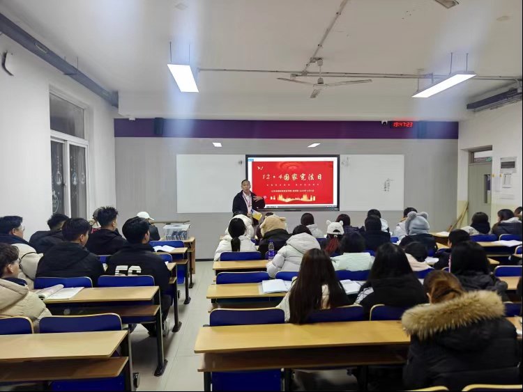 在第十二个国家宪法日来临之际,为推动宪法深入人心、在校园落地生根,商学院精心策划了这场主题班会。活动伊始,李占贞老师结合当前法治社会建设背景,详细介绍了活动流程与核心意义,从宪法作为“国家根本大法”的地位出发,系统阐释了国家宪法日设立的初衷,不仅是让宪法知识走进校园,更要让宪法精神融入青年成长,引导新时代大学生树立正确的法治信仰。