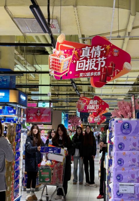 在长达6小时的直播活动中,学生们充分展现了扎实的专业功底。从商品展示到卖点讲解,从互动答疑到促销引导,每一个环节都体现出了学生们的专业素养。直播现场气氛热烈,学生们用生动活泼的讲解方式,将华联超市的优质商品娓娓道来,吸引了大量顾客驻足观看。特别值得一提的是,学生们创新性地采用了场景化直播方式,将超市实景与商品展示完美结合,让线上观众足不出户就能感受到身临其境的购物体验。通过巧妙的直播话术和互动技巧,有效激发了消费者的购买热情,带动了超市商品的销售转化。