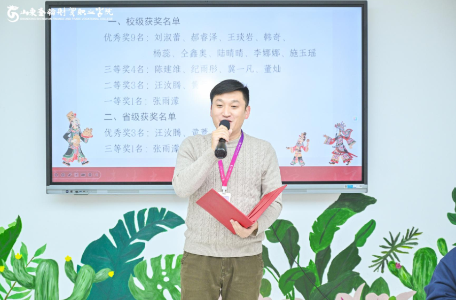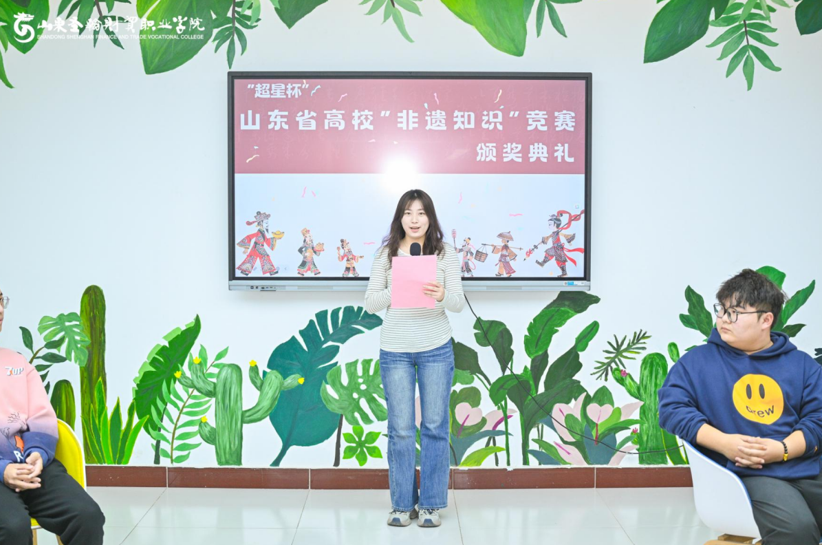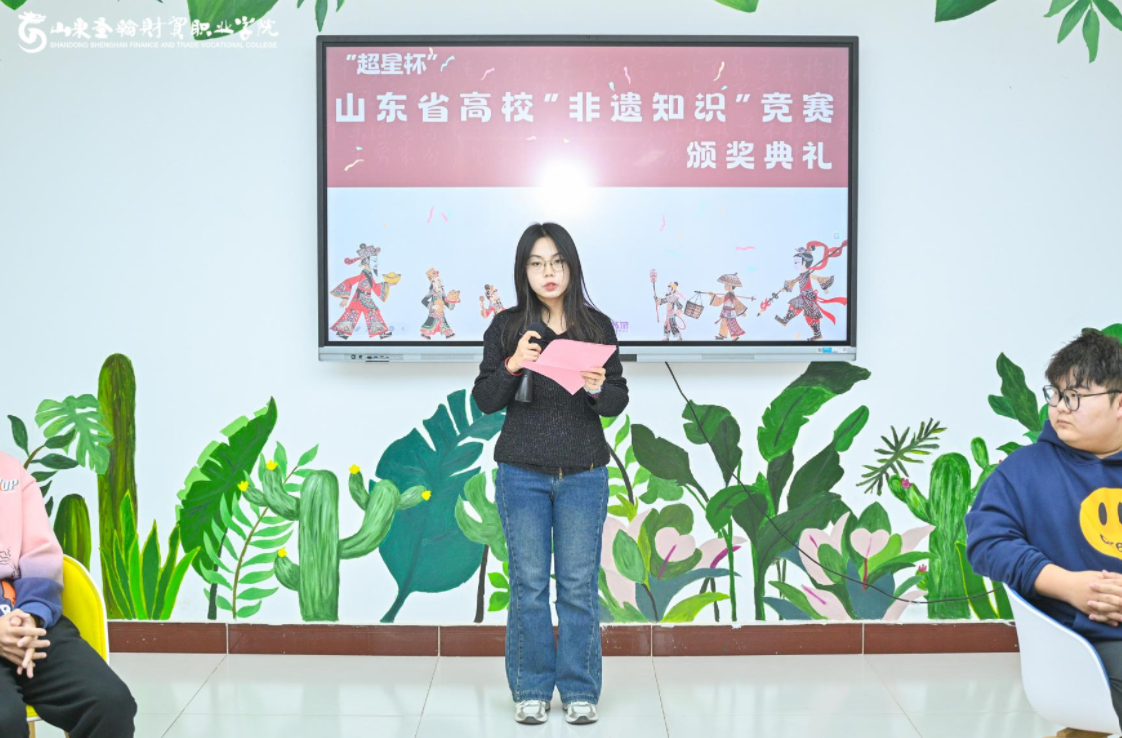 为营造“知非遗、爱非遗、传非遗”的浓厚校园氛围,在阅读中感受非遗文化,传承非遗文化,图书馆于今年10月组织学生积极报名参加“超星杯”山东省高校“非遗知识”竞赛活动。本次竞赛是山东省高等学校图书情报工作委员会特面向全省高校全日制在校生举办的重要活动。我校参赛学生通过“理论+实践”模式全力备赛,经过紧张的复习、练习与激烈角逐,最终有4名同学成功荣膺省级奖项、17名同学获评校级奖项。现场通过一段视频回顾了竞赛精彩瞬间,记录下同学们在非遗知识探索中的专注与热情。随后,在阵阵掌声中,团委书记周光奇宣读了本次竞赛的获奖名单!