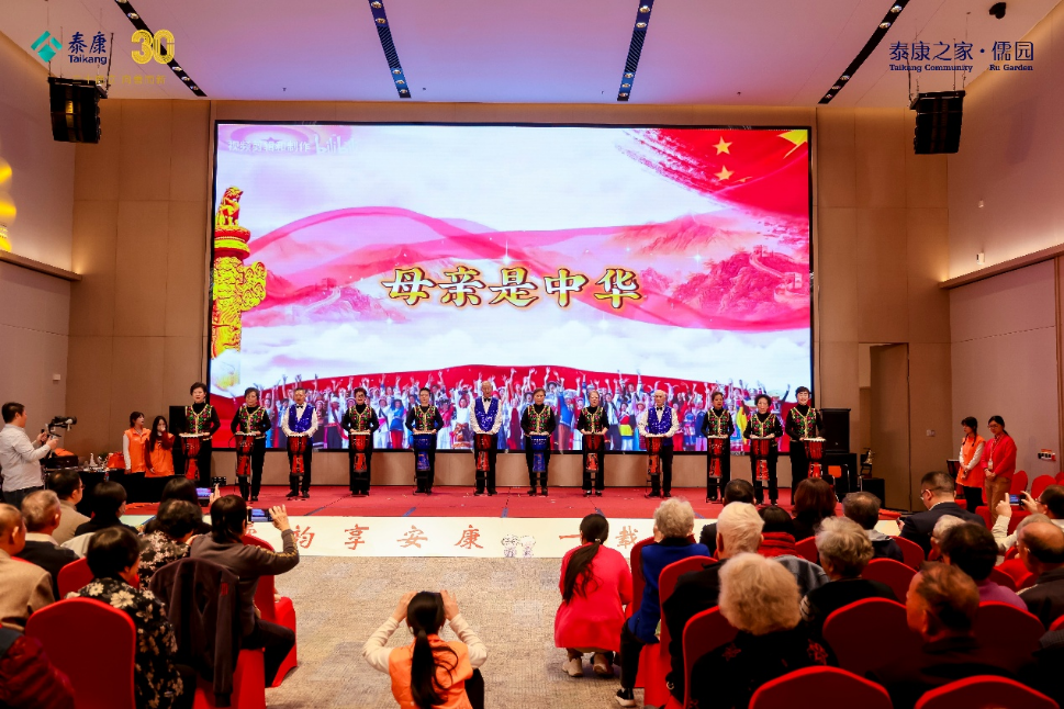 本次庆典以“儒文化”为核心脉络,分“乐享泰康・银铃乐章”“温情时刻・共启新章”两大时段,呈现了近20个精心编排的节目:开场节目《母亲是中华》以激昂鼓点拉开序幕,舞动柔力球俱乐部带来的《阳光华年》尽显银发群体的活力风貌;儒园服务团队原创的情景剧《孔子游诸国・儒园奇遇记》《道不尽的儒园情》,将儒家“孝悌亲仁”理念与园区日常服务巧妙融合,生动还原了儒园“文化养老”的生活场景;合作单位带来的合唱《没有共产党就没有新中国》、舞蹈《十送红军》,以青春之声传递红色精神,引发全场共鸣;此外,新疆舞《祝你生日快乐》、太极剑《三十二式太极剑》、非洲鼓《再唱山歌给党听》等节目轮番登场,涵盖多民族文化与传统技艺,为现场增添了多元色彩。
