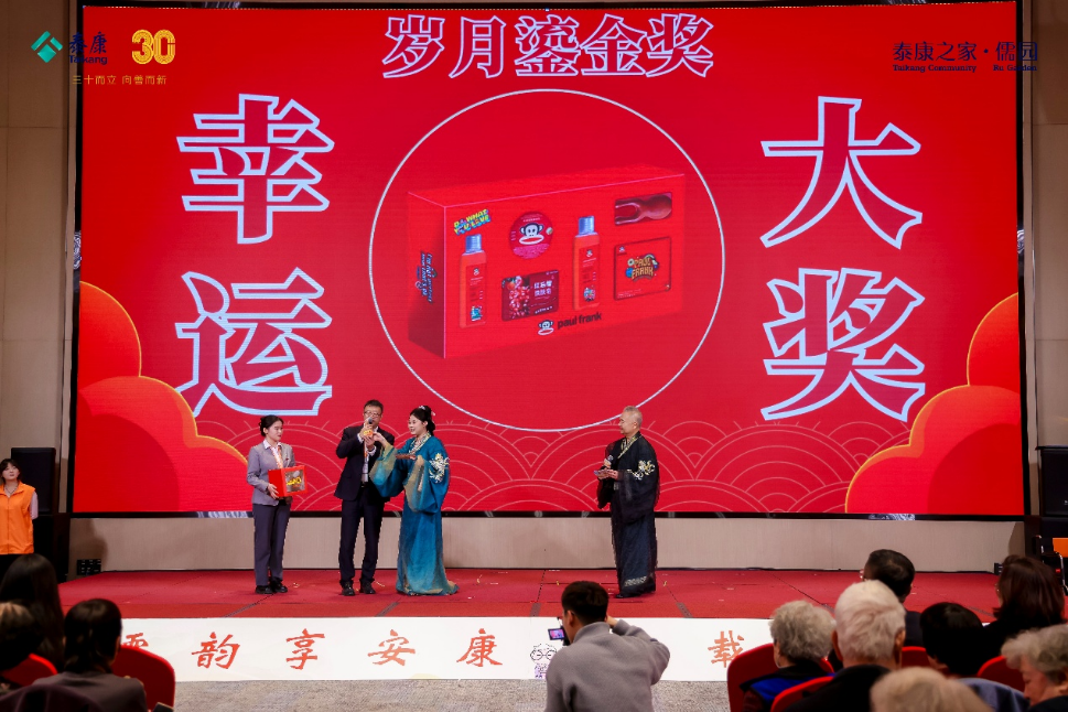 庆典现场还设置了“岁月鎏金奖”“四季芳华奖”等多轮抽奖环节,并举行了书画作品捐赠仪式,居民们以笔墨寄情,为儒园一周年送上文化祝福。