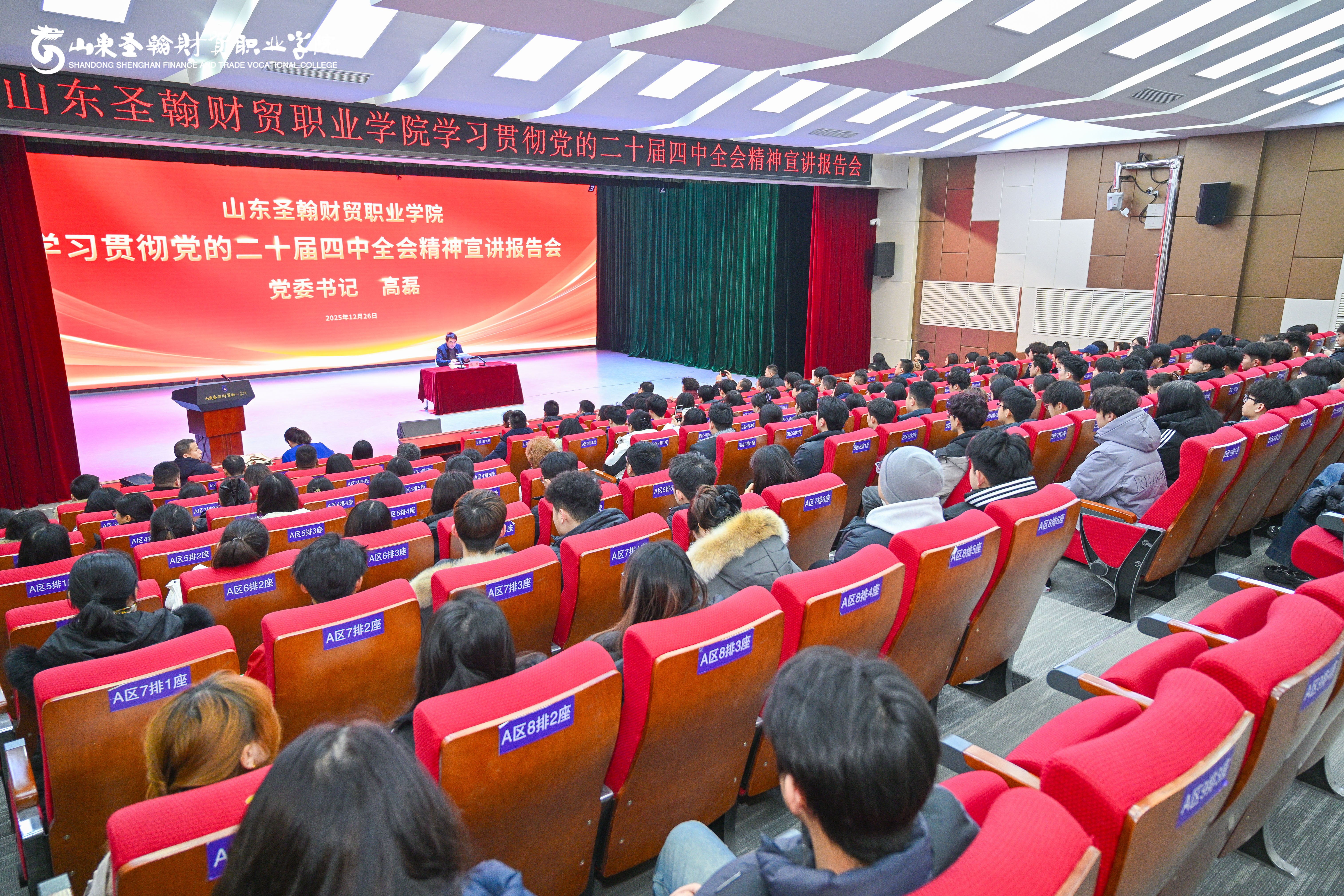 为全面学习贯彻党的二十届四中全会精神,推动学校教育教学事业高质量发展,12月26日下午,学校在吉纯楼第二报告厅举行学习贯彻党的二十届四中全会精神宣讲报告会。学校党委书记高磊以《深入学习贯彻党的二十届四中全会精神,奋力谱写学校高质量发展新篇章》为题作宣讲报告。党委委员、党委宣传部部长张小宾主持会议。全体校领导,科级以上干部及师生代表参加报告会。