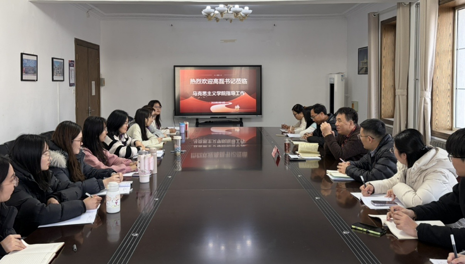2026年3月12日下午,山东圣翰财贸职业学院党委书记高磊深入马克思主义学院,就思想政治理论课建设工作进行专题调研指导,为学院思政教学改革、科研课题研究及教学成果培育指明方向、明确路径。学校党委办公室主任崔光耀、教务处处长李涛陪同调研,马克思主义学院院长阎君梅及全体思政课教师参加工作会议。