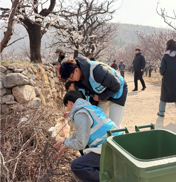 活动当天,万亩杏花园内花团锦簇,志愿者们身着统一蓝马甲,穿梭于景区主干道、观景台及热门打卡点,热情为游客提供路线指引、秩序维护、文明劝导等服务。此外,志愿者们还主动协助景区工作人员清理步道及绿化带内的垃圾,向游客发放文明旅游宣传单页,倡导“无痕出游”理念。蓝马甲与粉白杏花交相辉映,成为春日山野间一道别样的风景线。