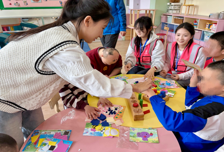 本次志愿服务紧扣专业特色,分三组开展精准化服务。学前教育组以“启蒙伴成长,快乐润童心”为主题,为低龄儿童带来绘本共读、儿歌传唱与手工折纸、贴画活动,耐心引导孩子们动手动脑、大胆表达;为学龄儿童进行课业辅导与趣味识字、益智游戏,在轻松互动中激发学习兴趣,用陪伴点亮童心 。