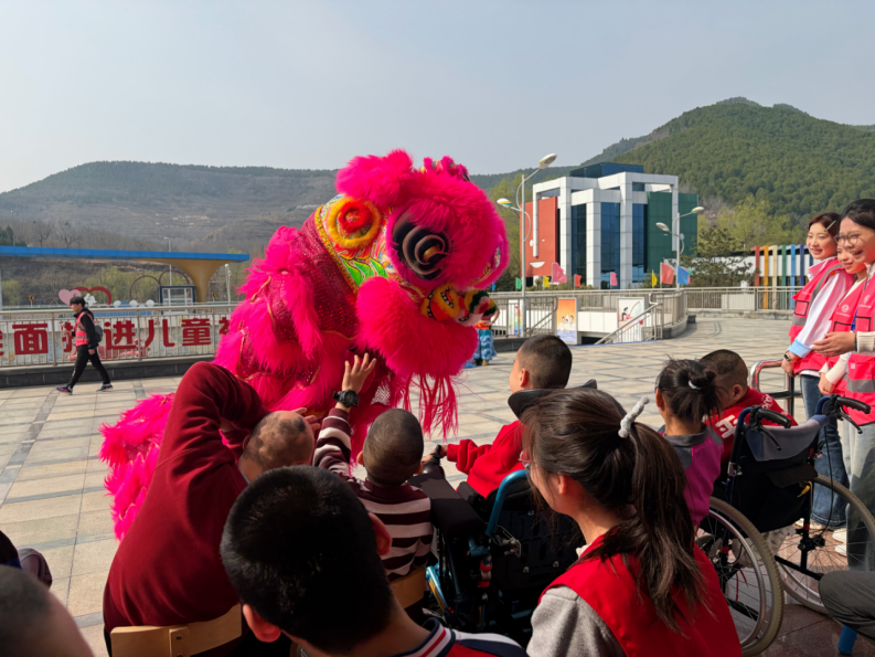 上午9时30分,活动正式开始。福利院负责人对志愿者一行表示热烈欢迎,详细介绍了儿童的生活、学习及康复情况,并强调活动安全与注意事项。志愿者们主动与孩子们微笑问候、轻声互动,迅速拉近彼此距离。体育专业志愿者带来了轻柔舒缓的舞狮表演,节奏温和、互动友好,在营造欢乐氛围的同时充分照顾儿童身心特点,为活动拉开温馨序幕!
