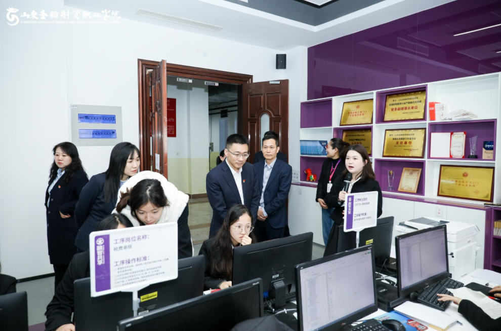 随后,嘉宾一行实地参观了位于吉纯楼413的圣翰融智·财务云共享中心产业基地。基地负责人姜珏琪详细介绍了基地的运营模式、校企合作成果及账务处理与风险控制流程,展示了商学院在财务共享服务领域的实践探索与育人成效。
