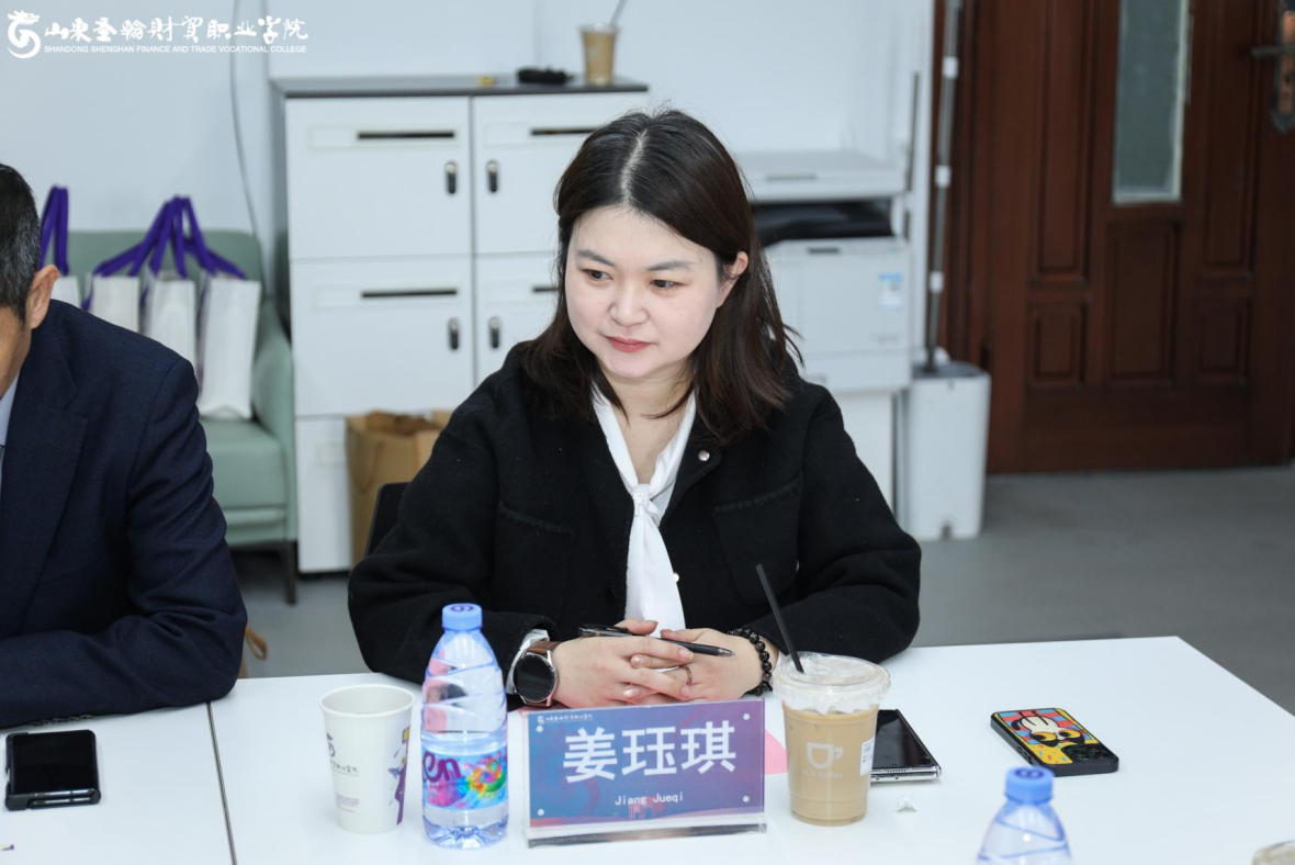 参观结束后,双方在吉纯楼411会议室举行座谈交流。商学院院长盖晓艳围绕商学院的办学特色与产教融合实践进行了详细阐述,重点分享了学院在专业群建设、订单班培养、现代学徒制试点等方面的积极探索,展示了学院在推动人才培养与市场需求紧密对接方面的务实举措。