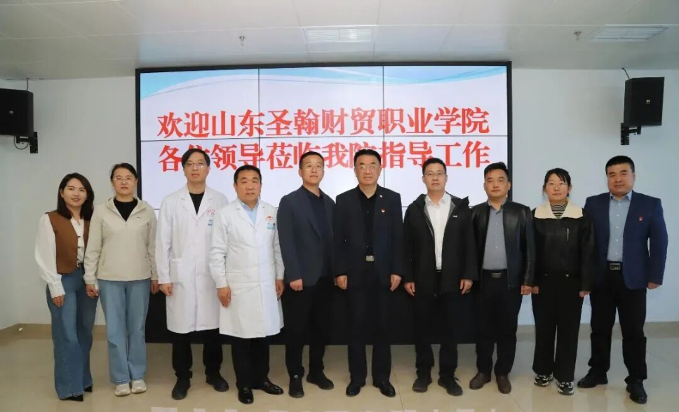 为深入推动产教融合、强化校企协同育人,精准对接基层医疗行业人才需求,4月8日,山东圣翰财贸职业学院食品药品与医学技术学院副院长杨其义、产教协同发展中心运营主管宋占喜、教学秘书吴彬、教研室主任毕敏杰一行前往阳信县中医医院,开展校企合作交流及实地考察活动。阳信县中医医院党委书记马清华、党委副书记劳万升及相关科室负责人热情接待并陪同参观。