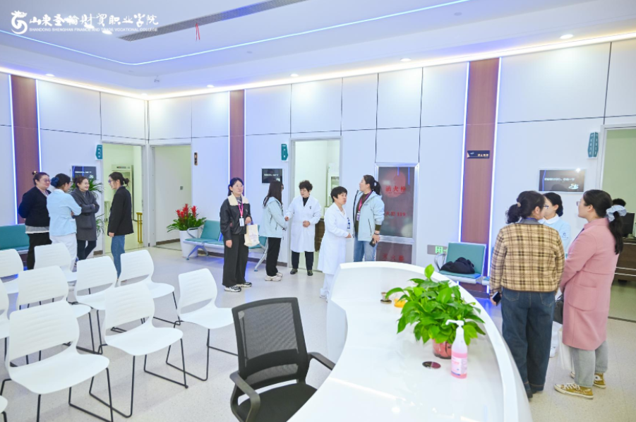 随后,全体人员统一乘车前往校外济南槐荫圣翰门诊部。在门诊部负责人及门诊护士长的带领下,大家先后参观了急诊诊室、专科诊室、治疗室、处置室、输液室、药房、检验科等区域。参观过程中,校医院医护人员结合临床实际,详细了解门诊部的运营模式、服务范畴、诊疗流程及特色科室建设情况。学院教师们则围绕临床病例、诊疗技术、医患沟通等问题与医护人员展开深入交流,进一步明晰了基层医疗服务的实际需求与发展方向。