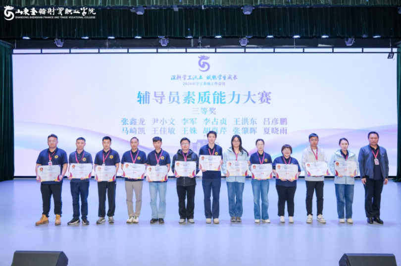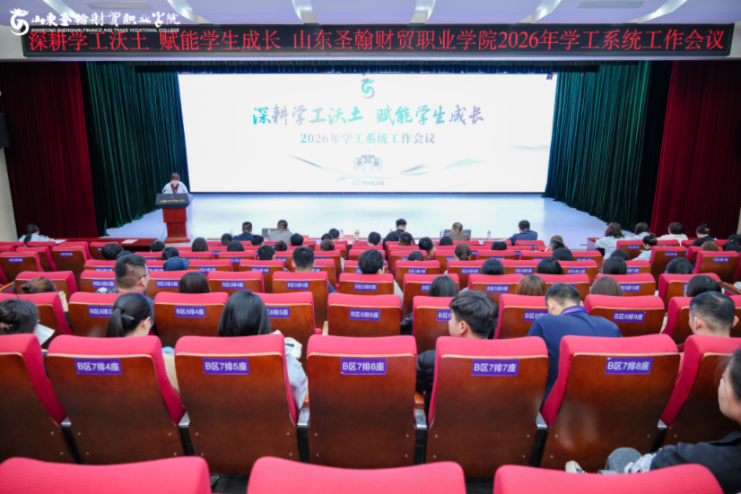 4月20日下午,山东圣翰财贸职业学院在吉纯楼第二报告厅举行2026年学工系统工作会议。校长刘广耀,党委副书记、常务副校长姜峤,副校长阎磊出席会议。各二级学院学管院长、团总支书记、全体辅导员及学生工作处全体工作人员参加会议。