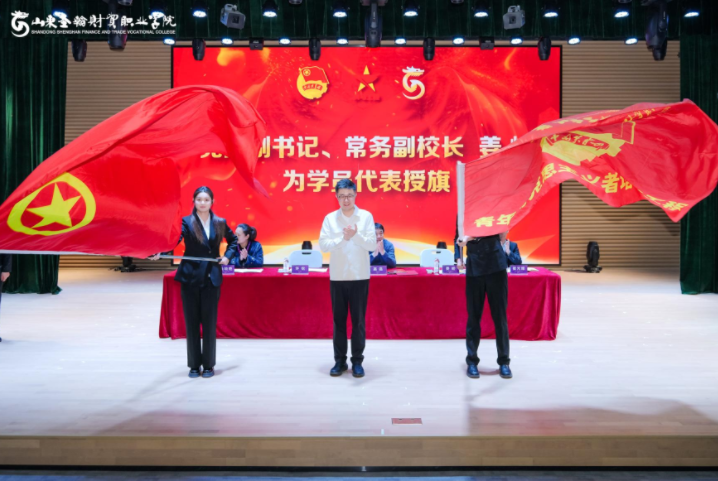 学校党委副书记、常务副校长姜峤为学员代表授旗。鲜红的旗帜既承载着青年骨干的责任与使命,也寄托着学校对青年一代的殷切期望。
