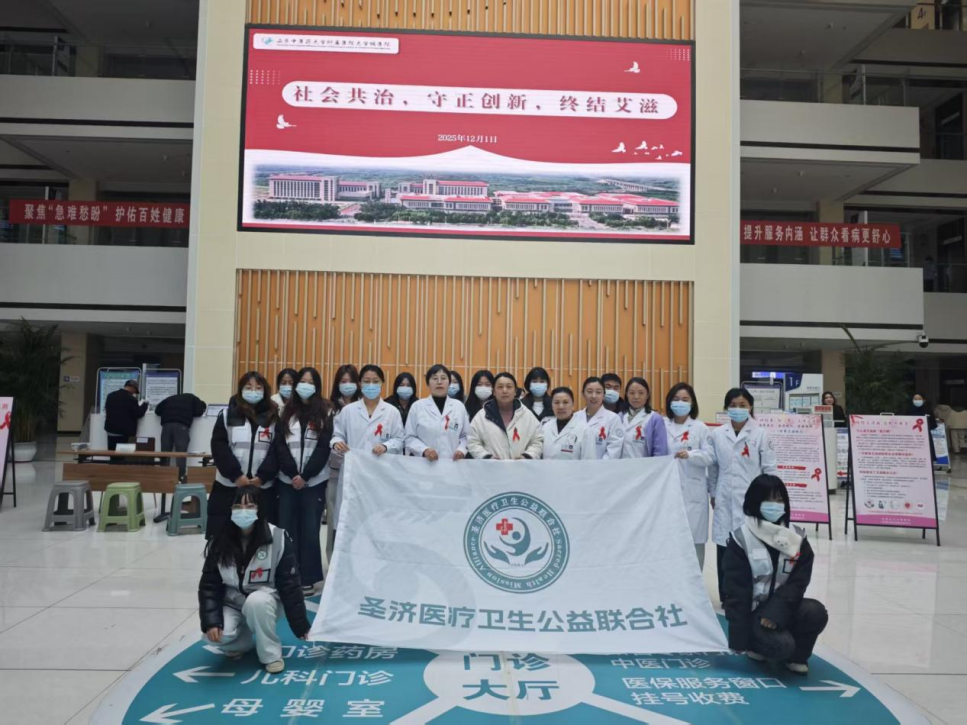 12月1日,在第38个“世界艾滋病日”到来之际,我校校医院组织圣济联社学生志愿者,前往长清大学城医院,参加了由长清区疾控中心与大学城医院联合举办的“社会共治,守正创新,终结艾滋”主题宣传教育活动。同学们以青春的热情与实际行动,为防艾宣传贡献了一份力量。