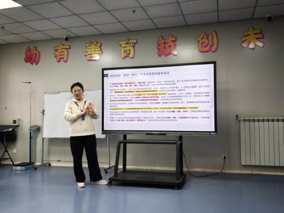 杨格格老师通过精准数据和政策解读,阐明了老幼一体化发展的必然性。她介绍,随着老龄化、少子化、小家庭化及女性就业率上升等多重因素影响,传统家庭照护功能逐渐弱化,养老托育服务正从家庭单一支撑向社会共建共育转型。国家层面已出台多项政策,鼓励养老与托育设施同址共建、资源共享,各地也纷纷推出专项方案,推动“一老一小”服务体系一体化建设,为职业教育改革指明了方向。