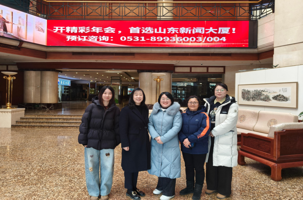 为深入推进产教融合、校企协同育人,精准对接企业人才需求,拓宽毕业生就业渠道,切实提升人才培养质量与学生就业竞争力,2025年1月22日,商学院工商管理教研室主任王君萍带领教研室教师周海玲、杨紫箫,以及思政教研室教师骆晓彤一行,前往山东新闻大厦文化酒店管理有限公司开展访企拓岗专项交流活动。该公司人力资源部招聘主管林希热情接待了到访团队。