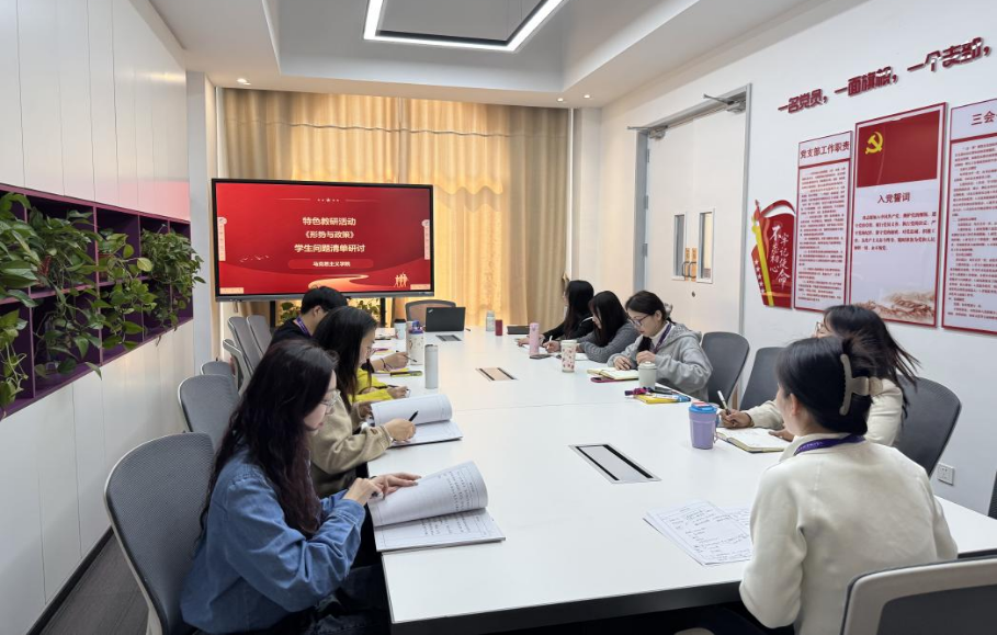 为深入推进思想政治理论课教学改革,精准对接学生思想实际,不断提升思政课程的针对性与实效性,3月20日,马克思主义学院在F314会议室召开教研会议,围绕《毛泽东思想和中国特色社会主义理论体系概论》《形势与政策》两门课程的学生问题清单开展专题研讨。形势与政策教研室主任王颖颖主持会议,毛泽东思想和中国特色社会主义理论体系概论教研室和形势与政策教研室教师参会。