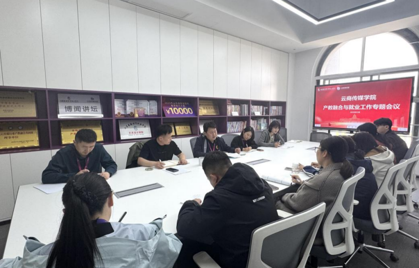 为进一步推进产教深度融合,夯实人才培养根基,全力提升毕业生就业质量,3月26日,云商传媒学院在吉纯楼304会议室召开产教融合与就业工作专题会议,统筹部署下一阶段重点工作,凝聚全院合力,推动教育教学、校企合作与就业工作同向发力、协同增效。云商传媒学院院长李学治、产教协同发展中心运营主管、联络员谢鑫、学院学生管理副院长孙建国、教学秘书赵冯冯、各教研室主任、实习就业联络员付洋以及教师代表参加本次会议。