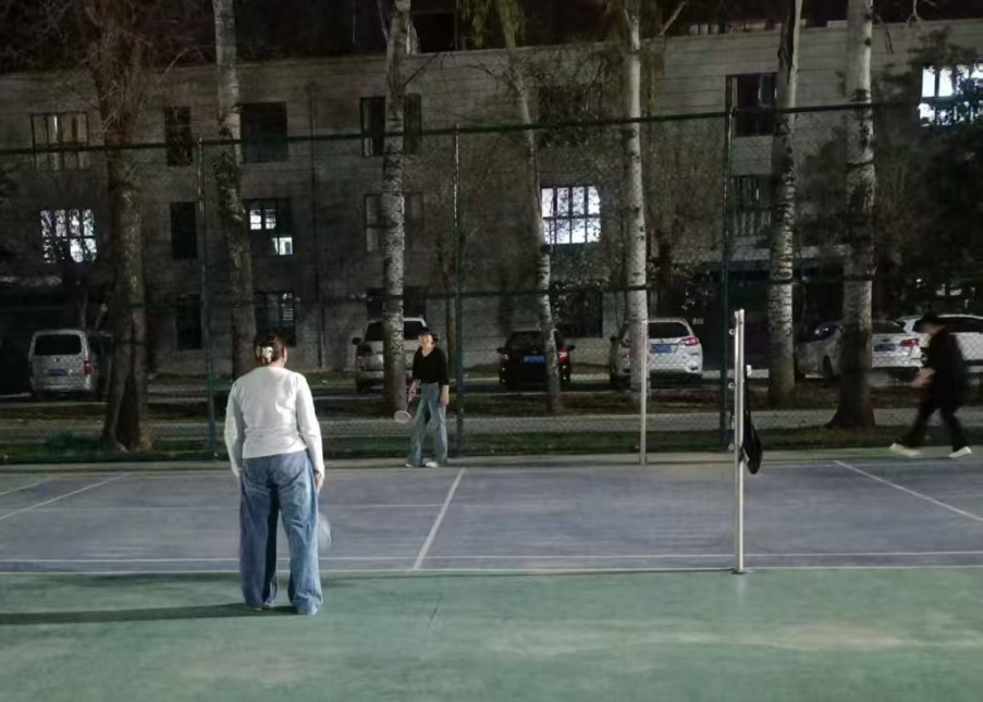 一旁的羽毛球场上,球拍挥舞间,白色的羽球在空中划出灵动的弧线。同学们两两对垒,步伐轻盈、配合默契,在你来我往的较量中舒展筋骨、释放压力,既锻炼了身体,也增进了彼此的交流。