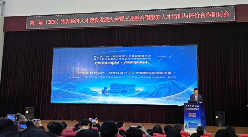 本次大会由行业协会牵头主办,聚焦银发经济产业升级与高素质康养人才队伍建设,汇聚了全国职业院校、行业龙头企业、科研机构的百余位专家学者与教育工作者,围绕政策解读、人才需求、标准建设、产教融合、教学创新等核心议题,搭建了“政校行企”四方协同的交流平台。两位教师全程参与主会场系列会议,深度学习行业前沿理念与实践经验。上午的会议环节,中国老龄产业协会、人社部相关教学指导委员会、沧州医学高等专科学校等单位的专家,围绕银发经济产业发展与高质量人才需求画像、技工教育赋能高技能人才培养路径、标准引领康养人才专业化发展、“沧医实践”康养人才培养模式等主题展开分享,系统解读了当前康养行业的人才需求导向、岗位能力标准与培养体系建设要点,为我院对接行业标准优化人才培养方案提供了重要参考。随后的主题报告环节,来自全国民政职业教育教学指导委员会、嘉兴技师学院、中联研究院等单位的专家,分别就康养技能人才“适配型”培养路径、党建引领人才建设实践、以产教集群推动人才培养创新等内容进行深入阐述,展现了职业教育服务银发经济的多元探索。